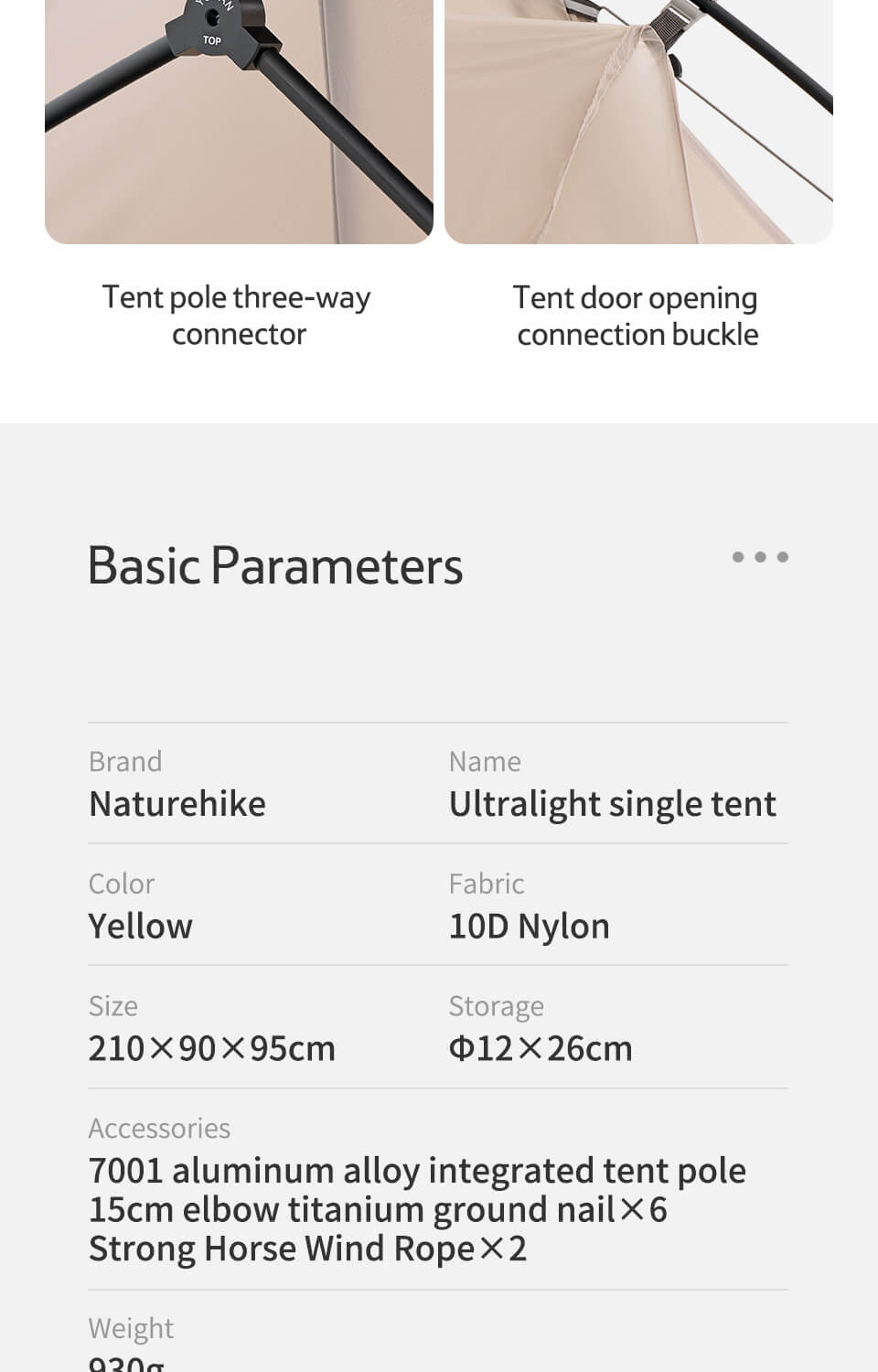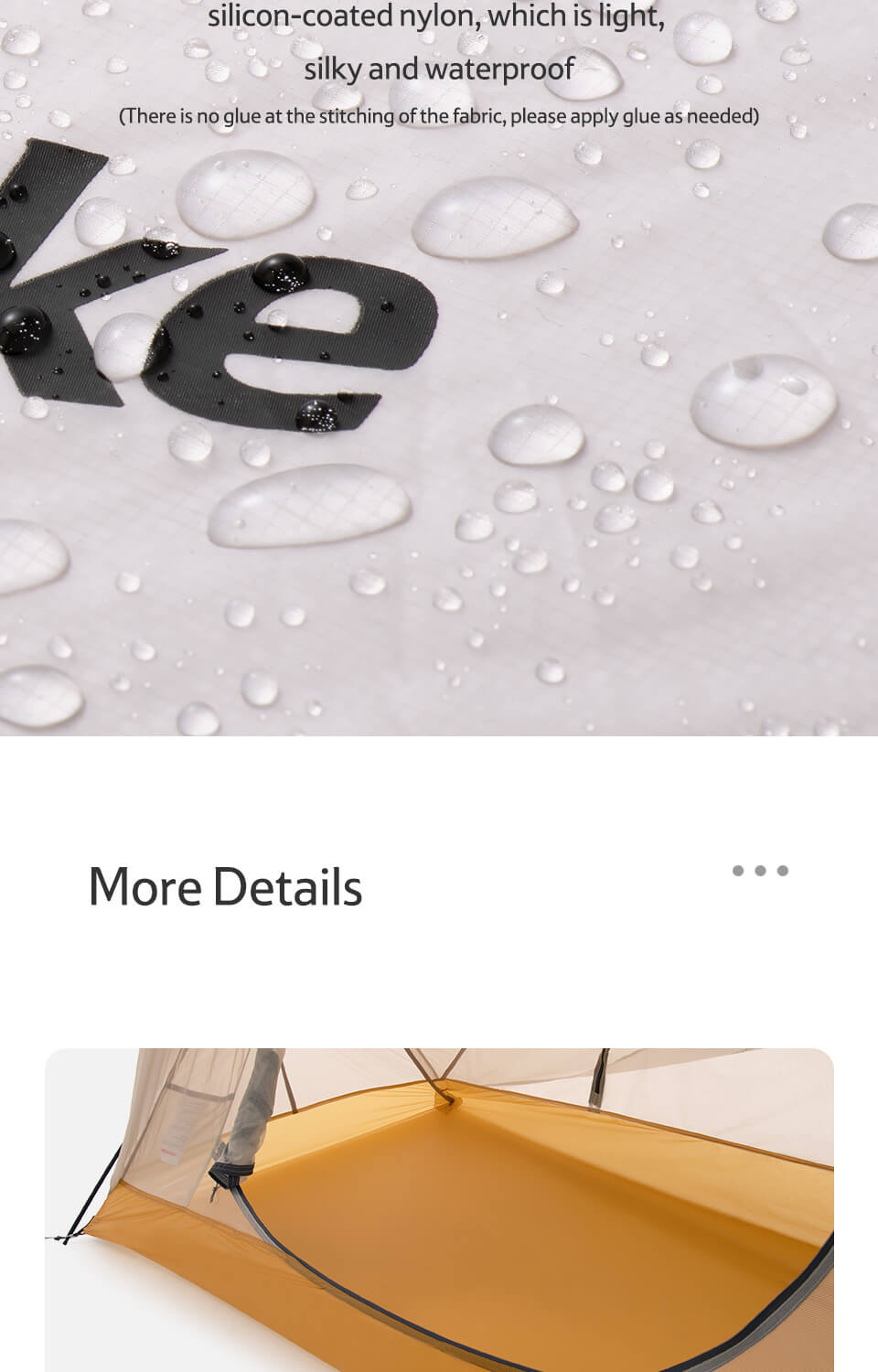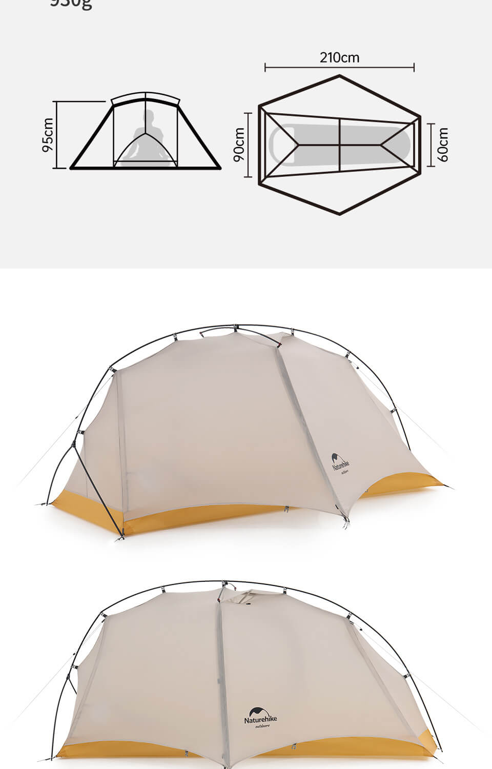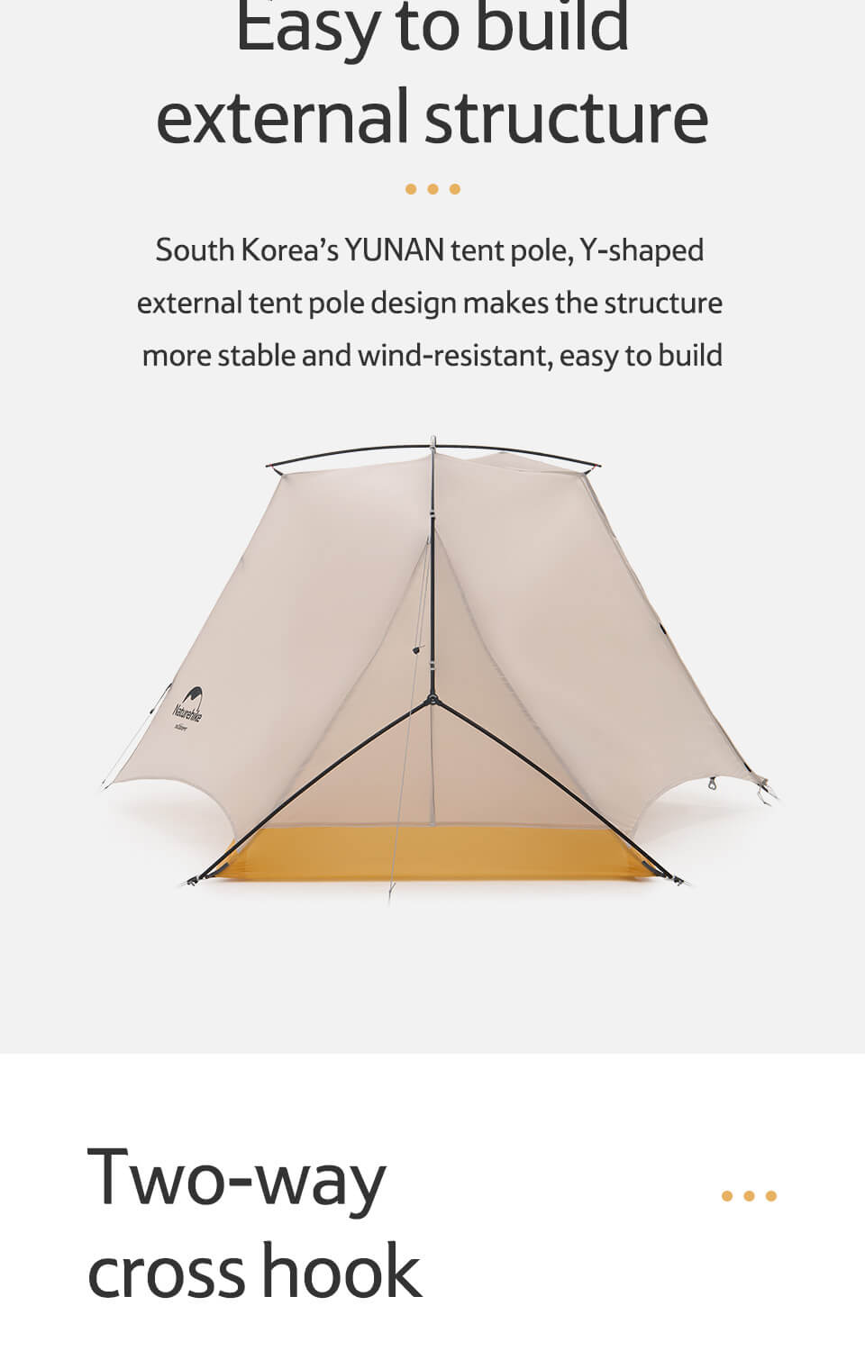Packliste: Zelt / Integrierte Zeltstange aus Aluminiumlegierung 7001 (ca. φ8,5 mm) / 10 Bodennägel / 2 Windseile / Spezielles Bodentuch / Aufbewahrungstasche