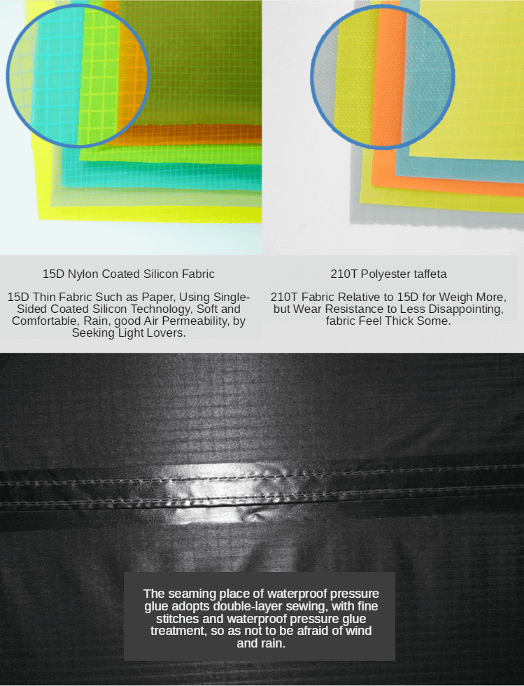 Fly : Nylon 15 D enduit de silicone / Taffetas de polyester 210 T