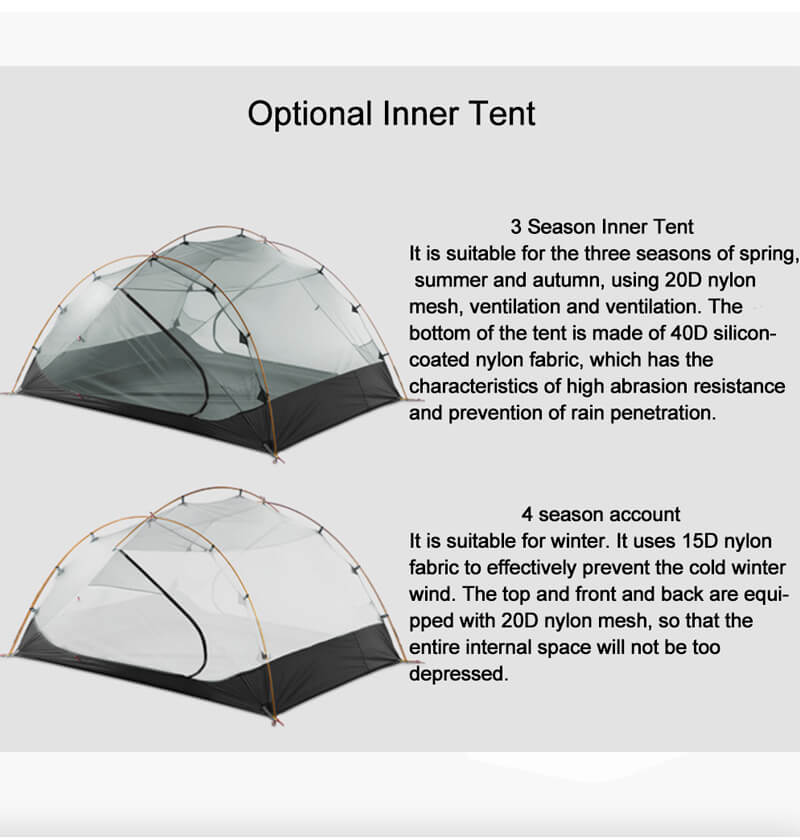 Tente intérieure : 3 saisons : maille 20 D / 4 saisons : nylon 15 D