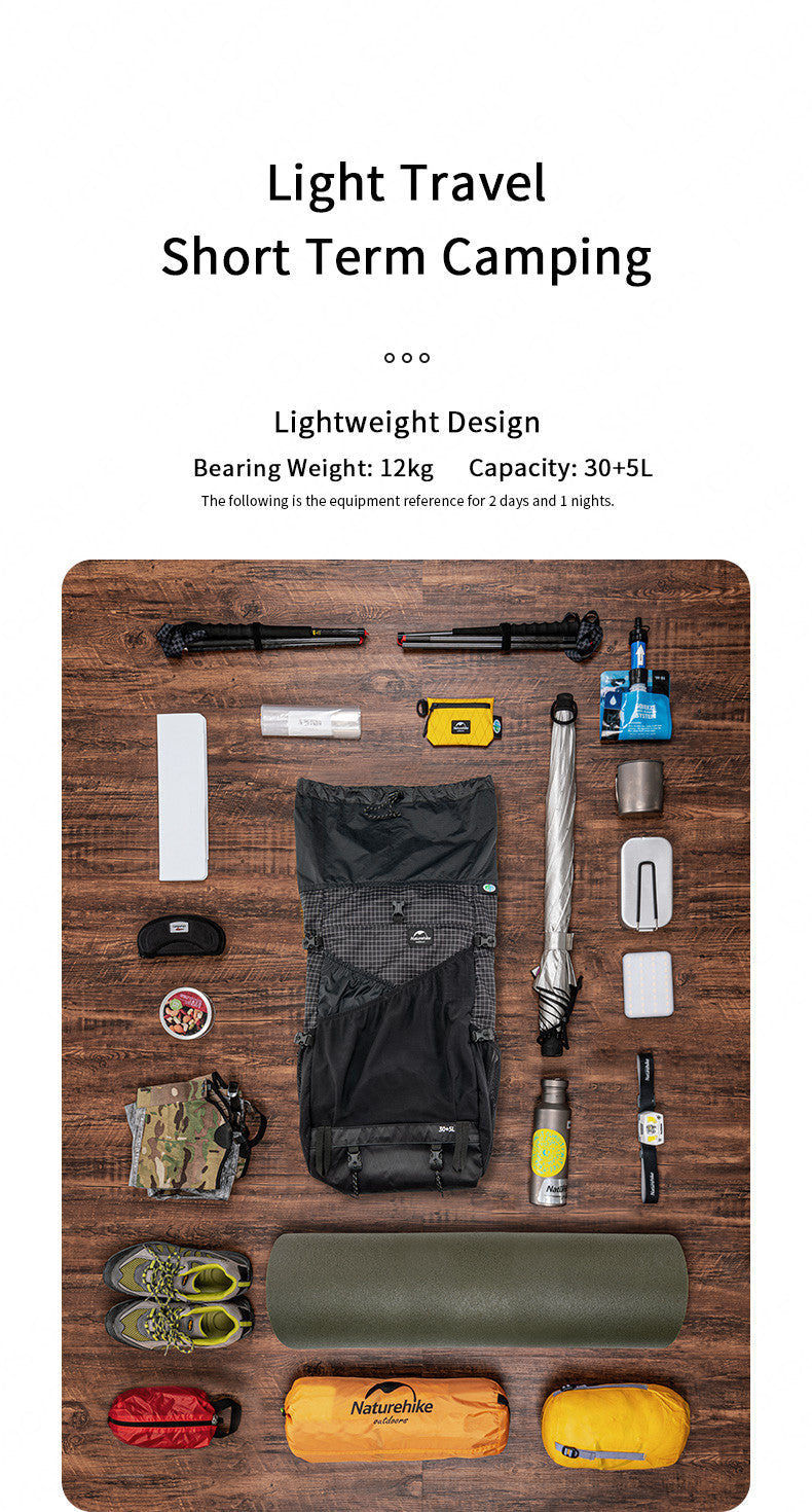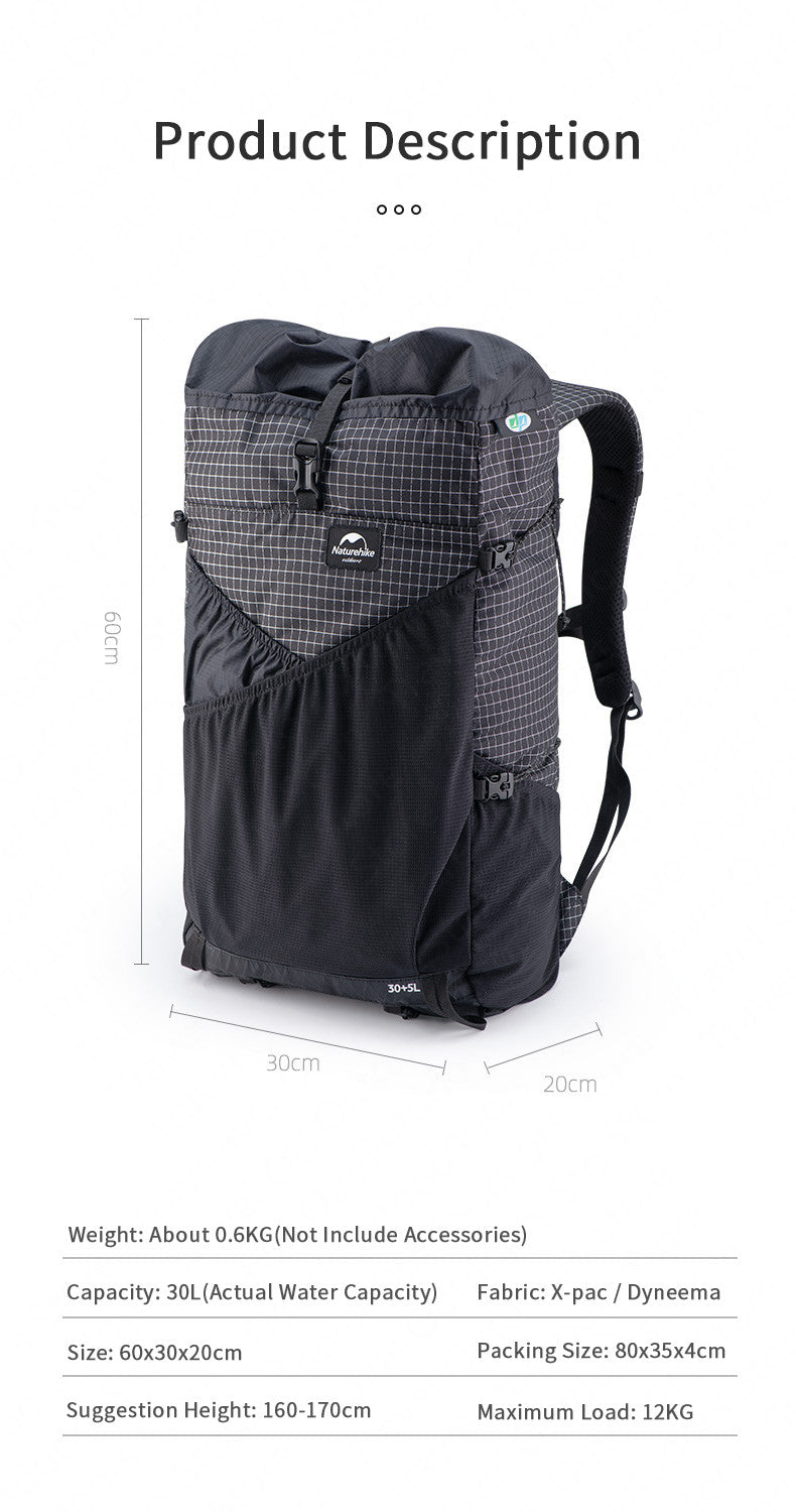 Naturehike 30+5L Sac à dos de camping ultraléger 0,6 kg XPAC Sac de voyage de randonnée de sport en plein air étanche avec tuyau d'eau