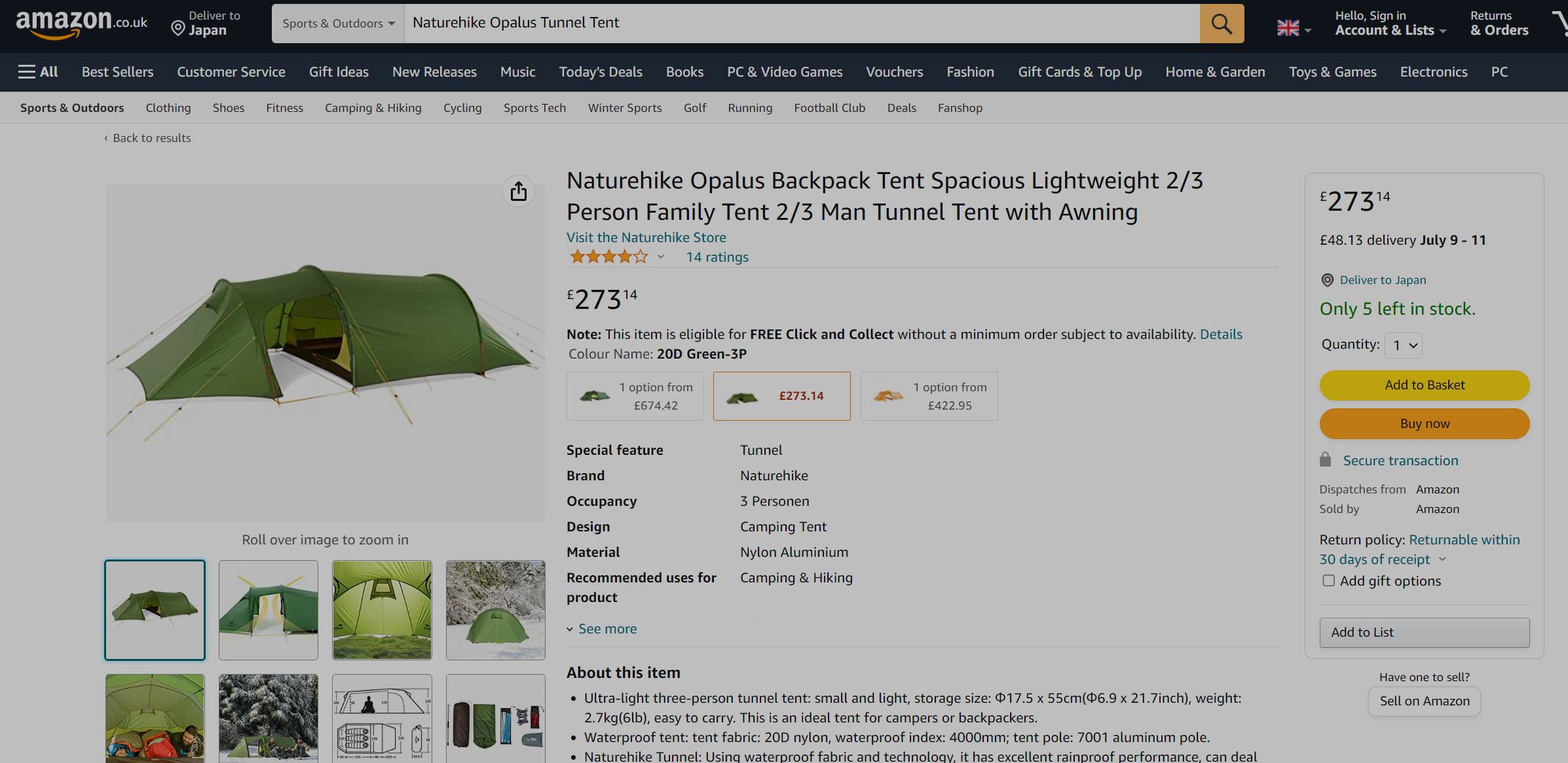 Notre taxe de vente incluse, les prix des pages de produits Aliexpress n'incluent pas la taxe de vente de 20 %, Naturehike Opalus 3 Prix réel 231 £ (193 £ * 1,2), Amazon 327 £ (273 £ * 1,2)